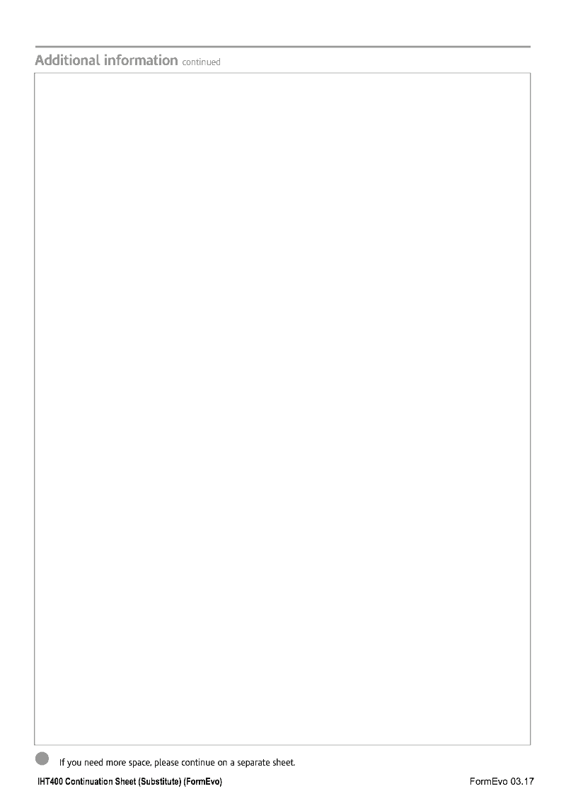 Continuation Sheet - Additional information for IHT400 Inheritance Tax account (Standalone version)