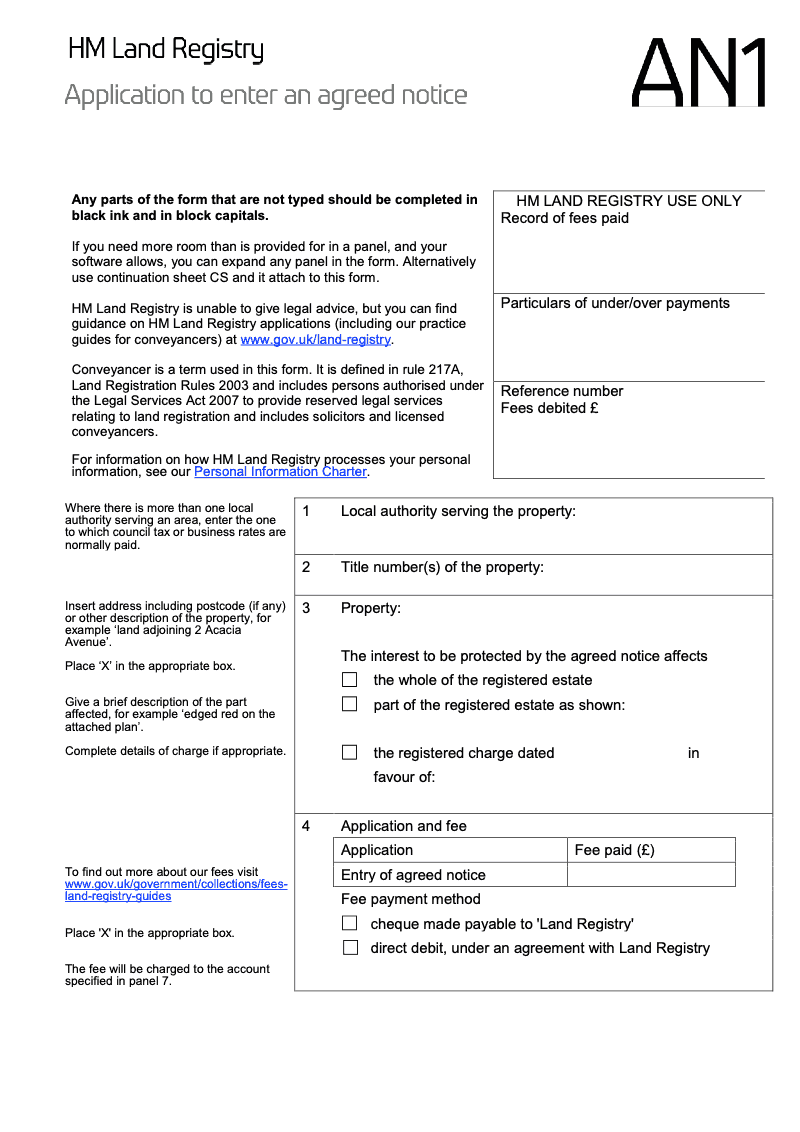 Application to enter an agreed notice