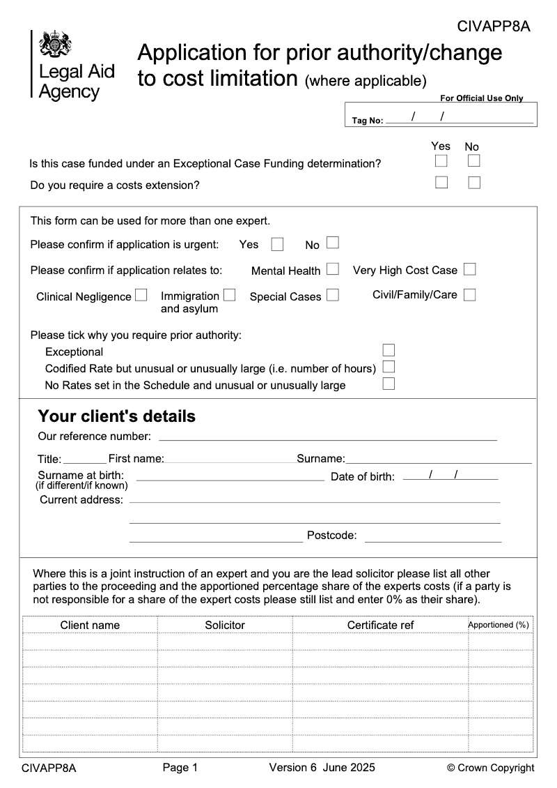 Application for prior authority/change to cost limitation