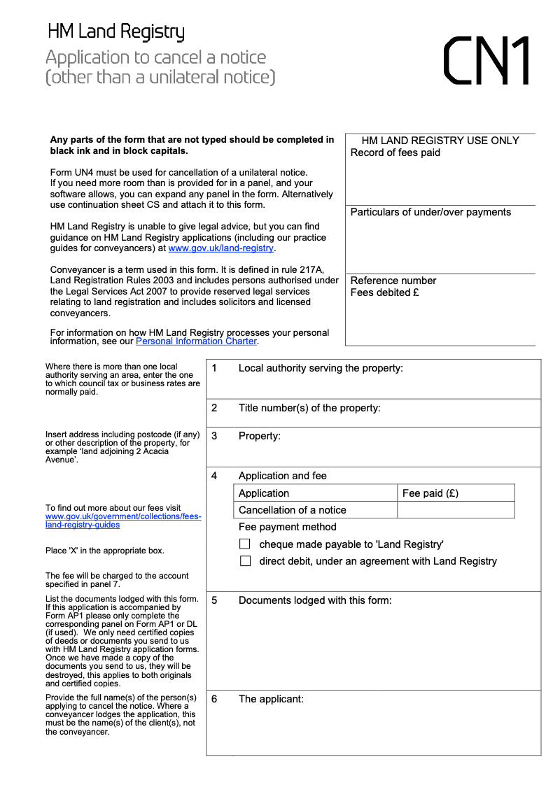 Application to cancel a notice (other than a unilateral notice) - Word Version