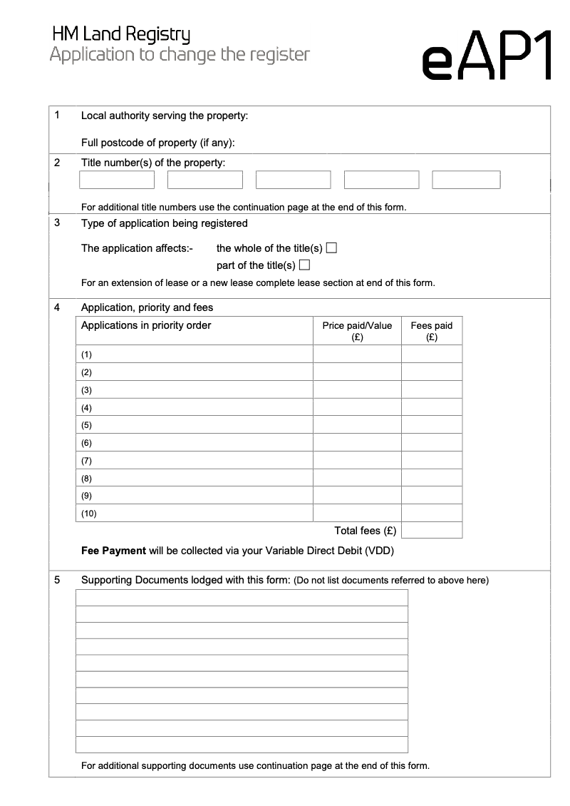 Application to change the register (online submission only)