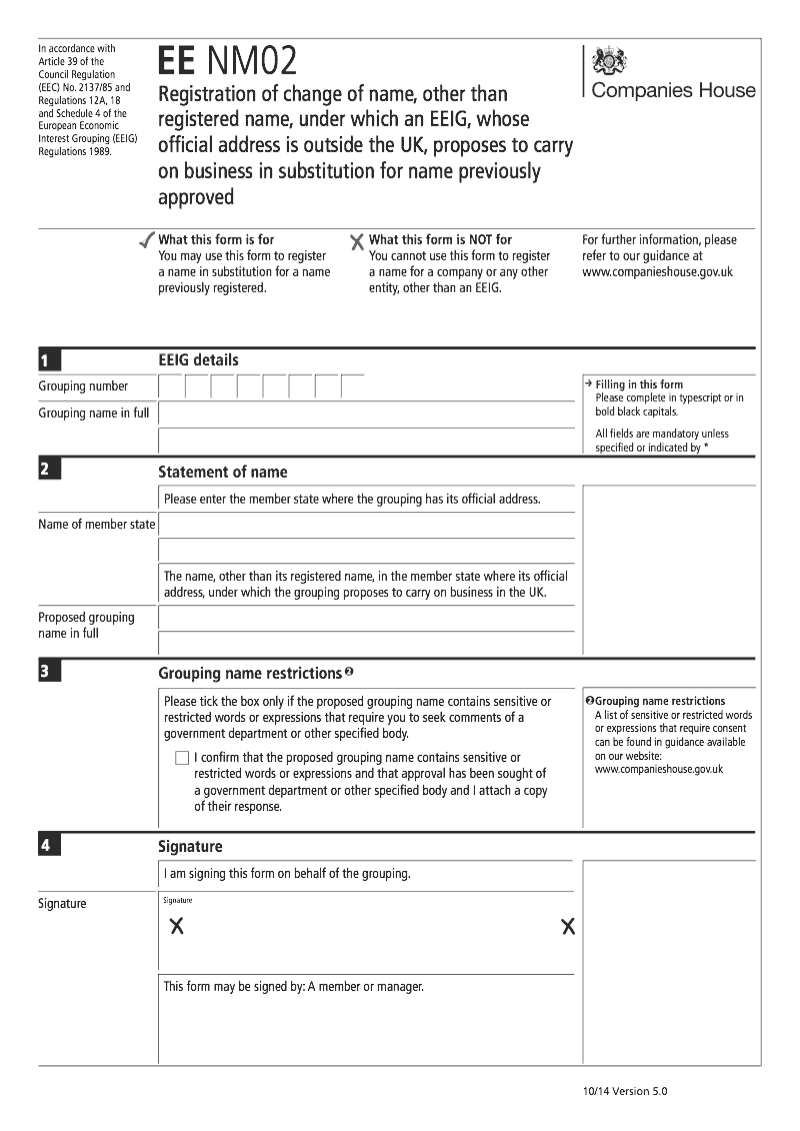 Statement of name, other than registered name, under which an EEIG whose official address is outside the UK, proposes to carry on business in substitution for name previously approved.