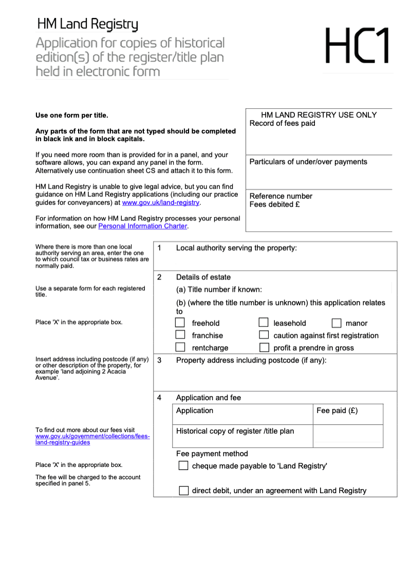 Application for copies of historical edition(s) of the register/title plan held in electronic form