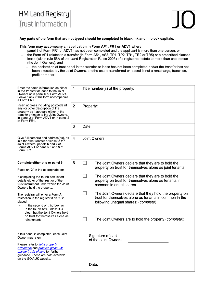 Trust information for joint owners