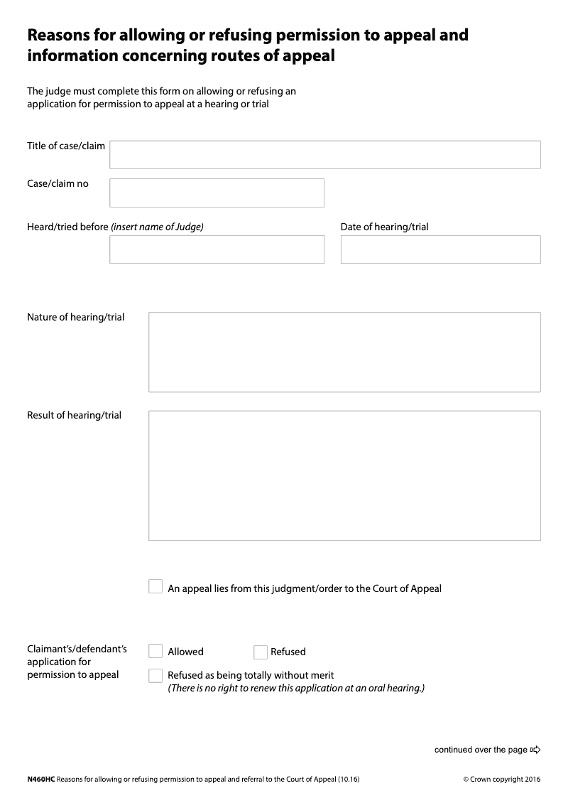 Reasons for allowing or refusing permission to appeal and information concerning routes of appeal