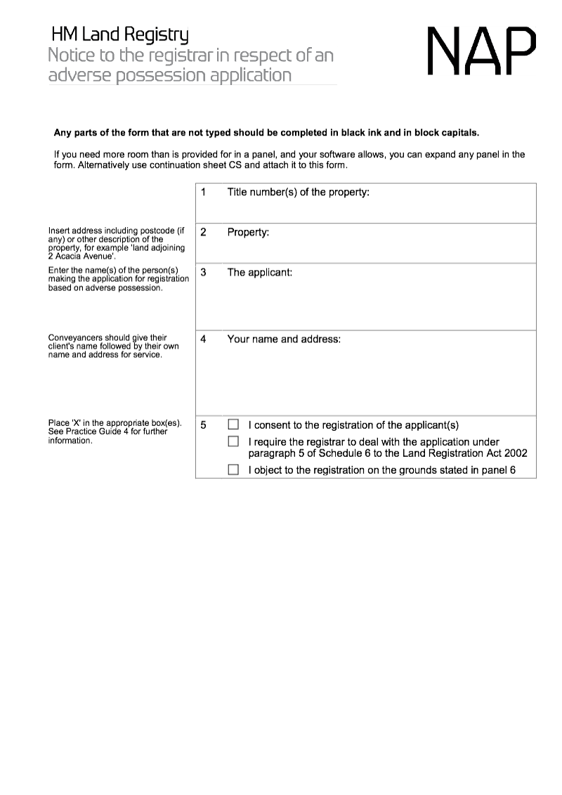 Notice to the registrar in respect of an adverse possession application