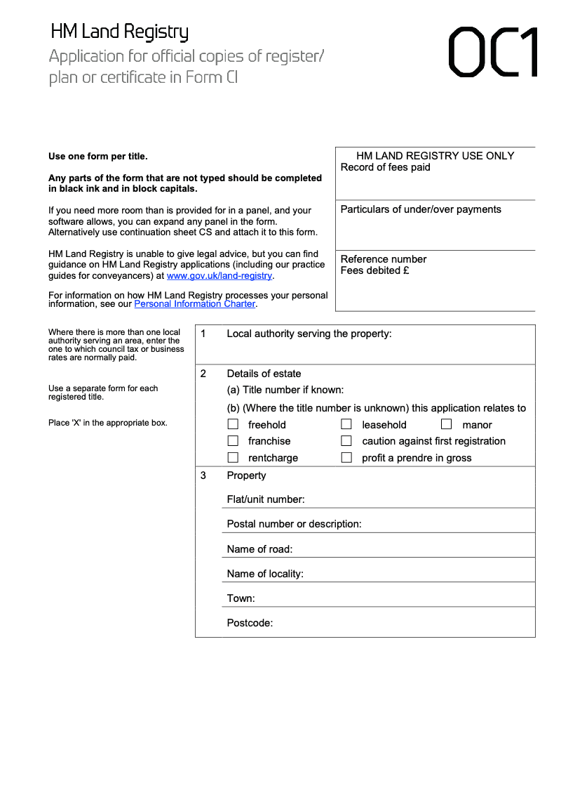 Application for official copies of register/plan or certificate in Form CI