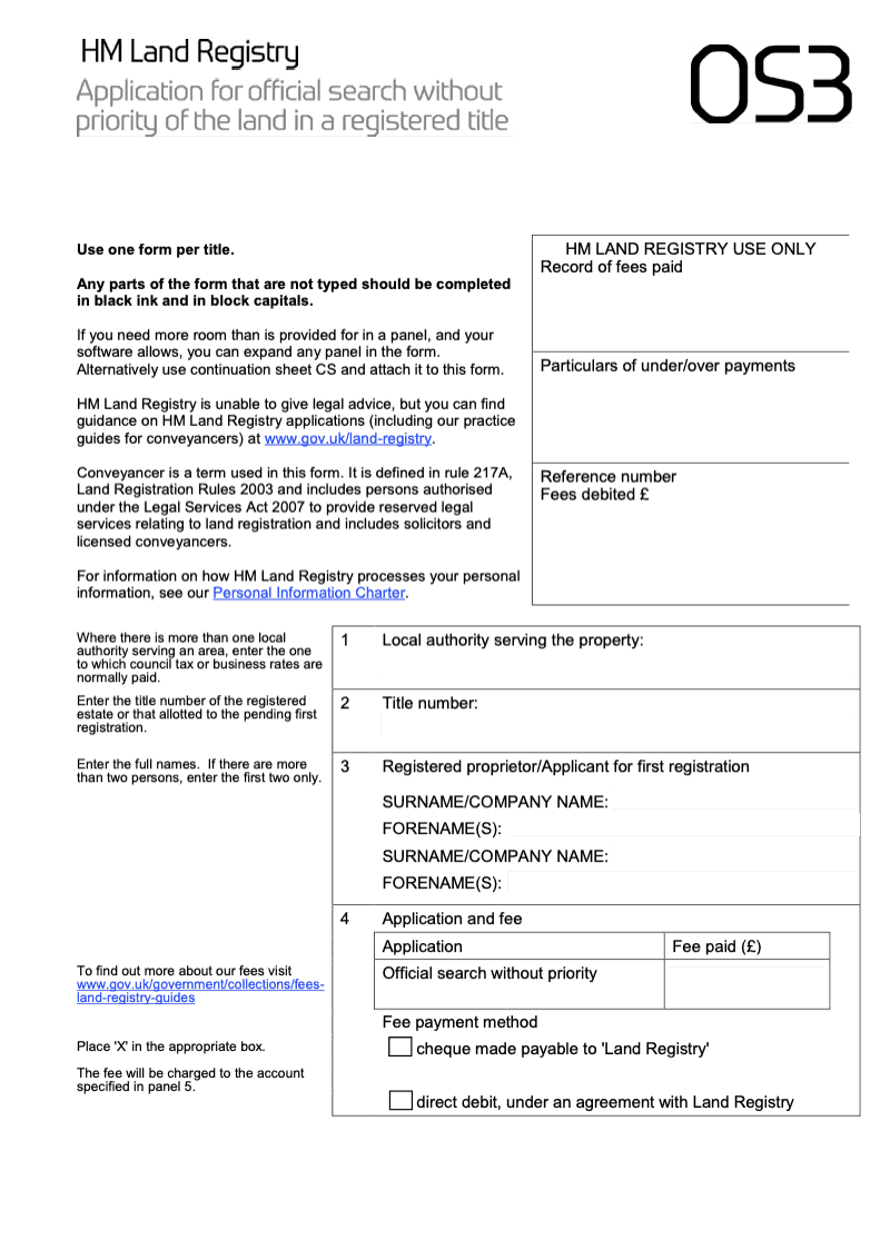 Application for official search without priority of the land in a registered title - Word Version