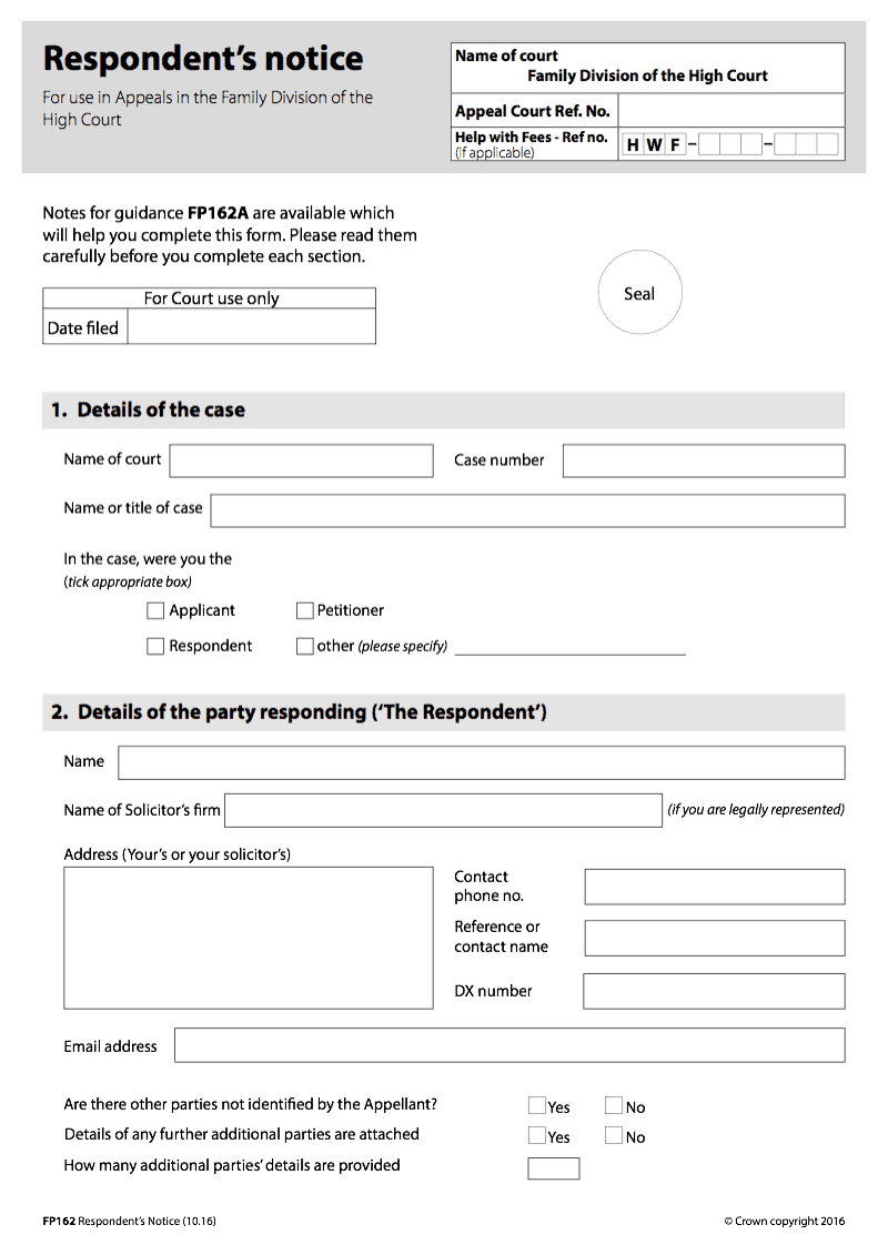 Respondent's notice - For use in Appeals in the Family Division of the High Court