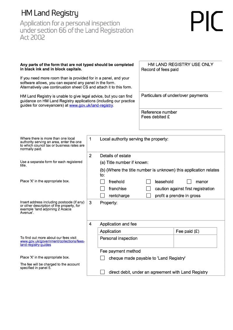 Application for a personal inspection under section 66 of the Land Registration Act 2002