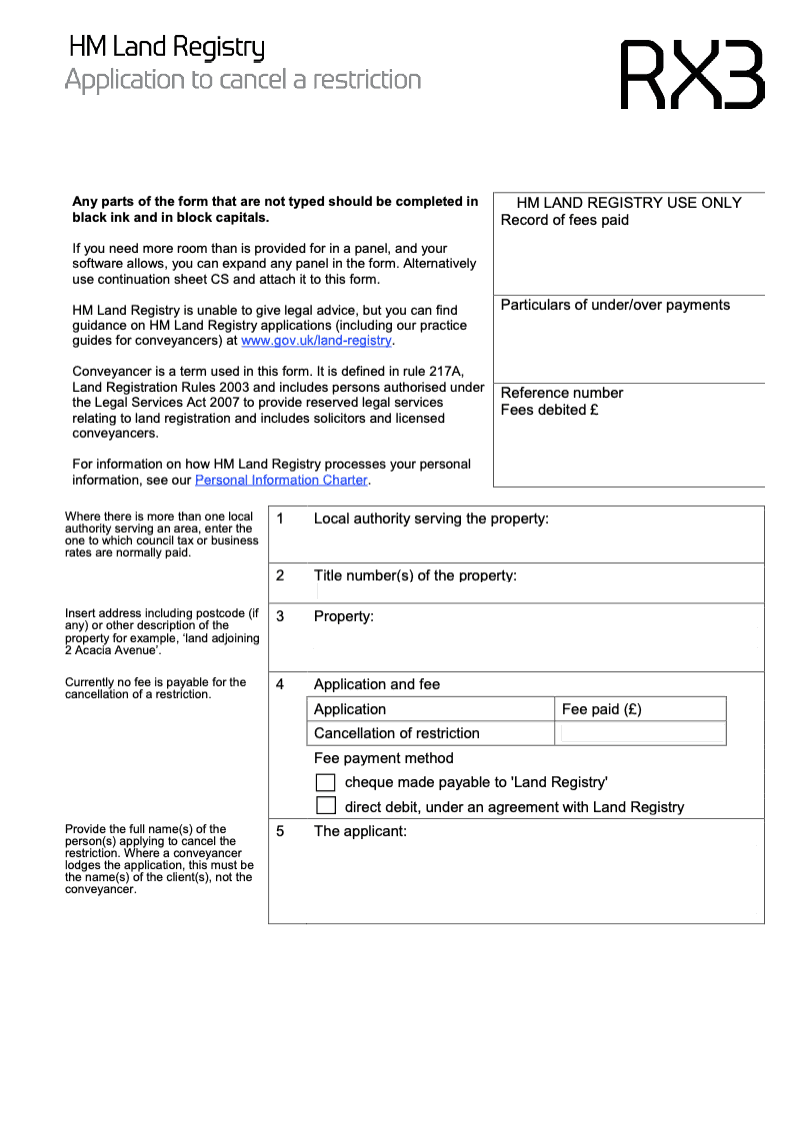 Application to cancel a restriction