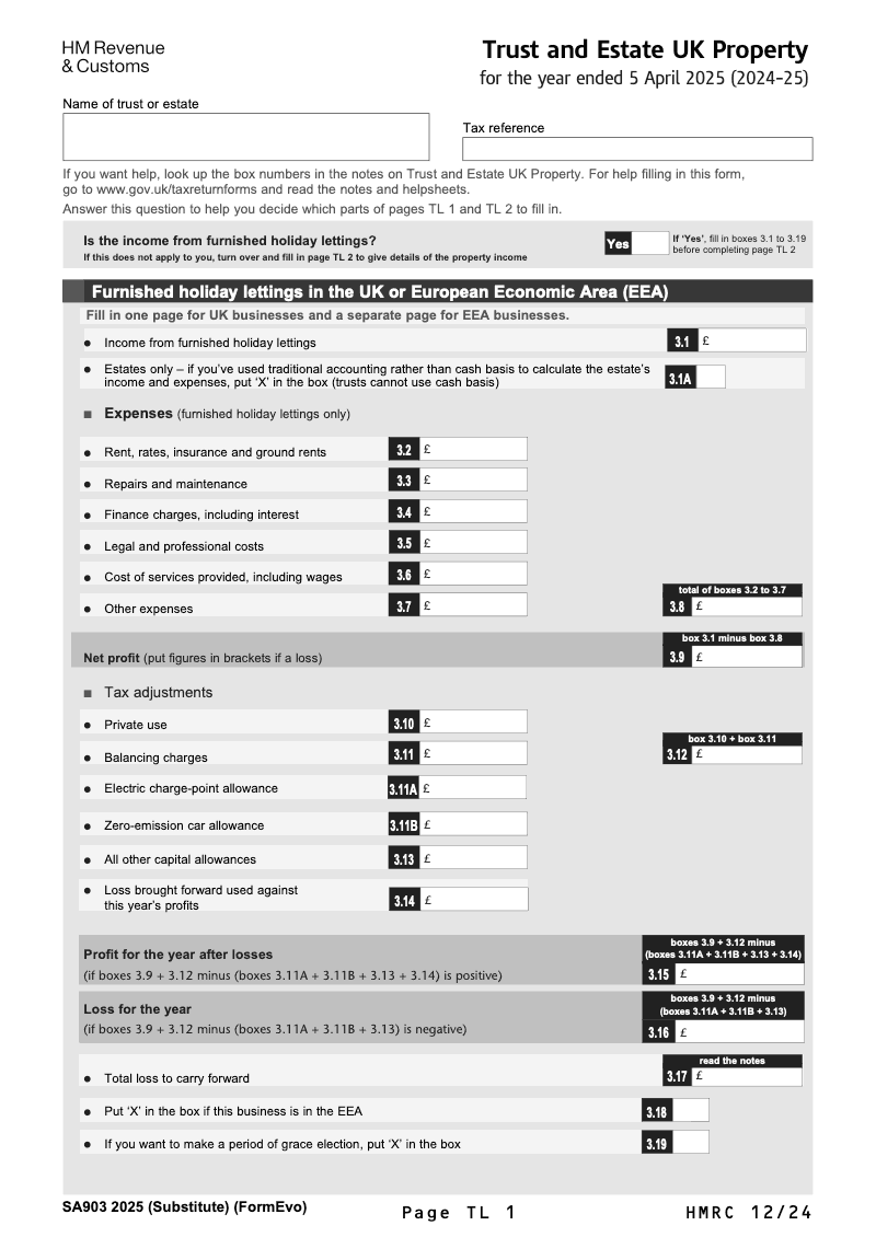 Trust and Estate UK Property 2025 for year ended 5 April 2025 (2024-25)