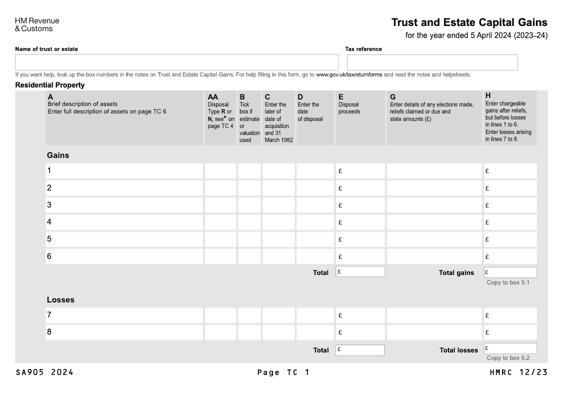 Trust and Estate Capital Gains for year ended 5 April 2024 (2023/24)