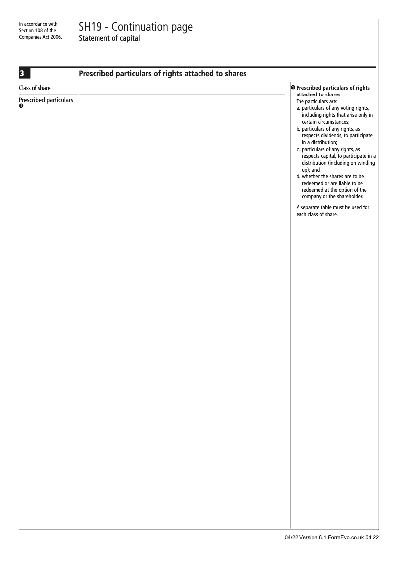 Statement of capital (Prescribed particulars of rights attached to shares) continuation page - SH19 Statement of capital (Section 108)