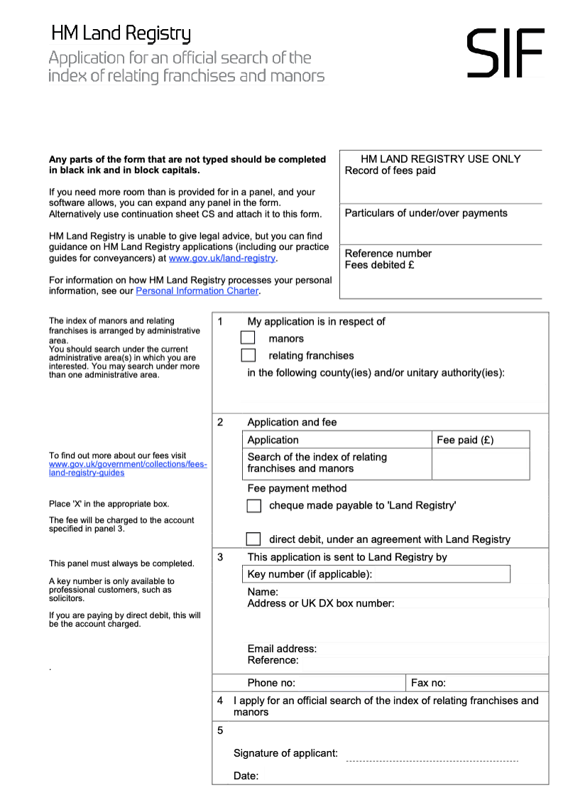 Application for an official search of the index of relating franchises and manors - Word Version