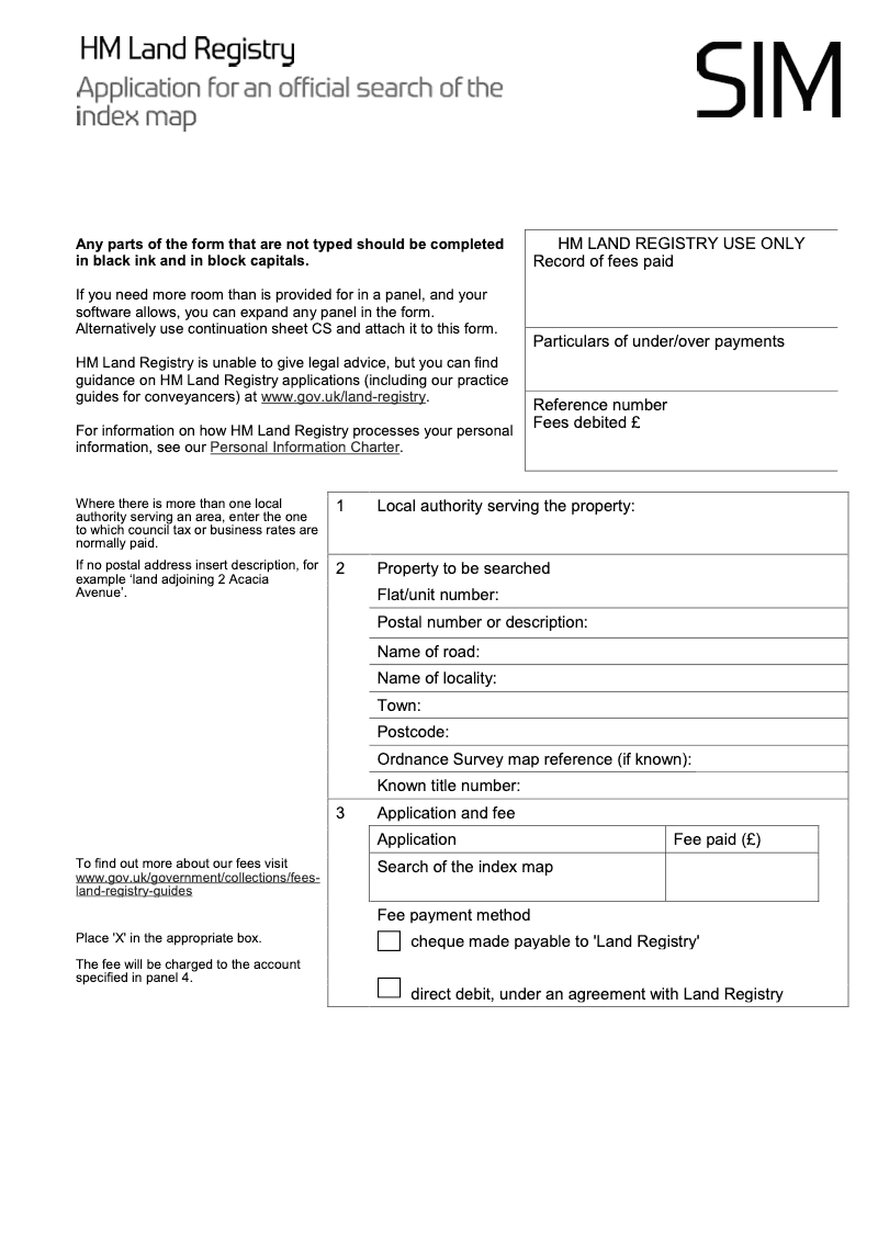 Application for an official search of the index map