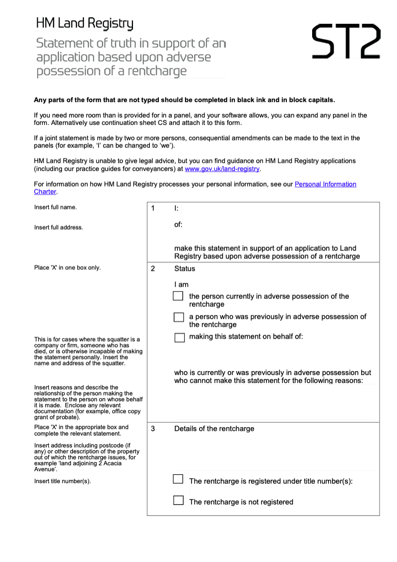 Statement of truth in support of an application based upon adverse possession of a rentcharge