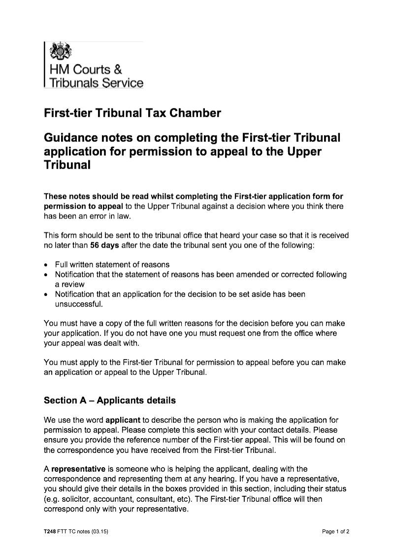 Notes for guidance on completing the First-tier Tribunal application for permission to appeal to the Upper Tribunal (First-tier Tribunal Tax Chamber)