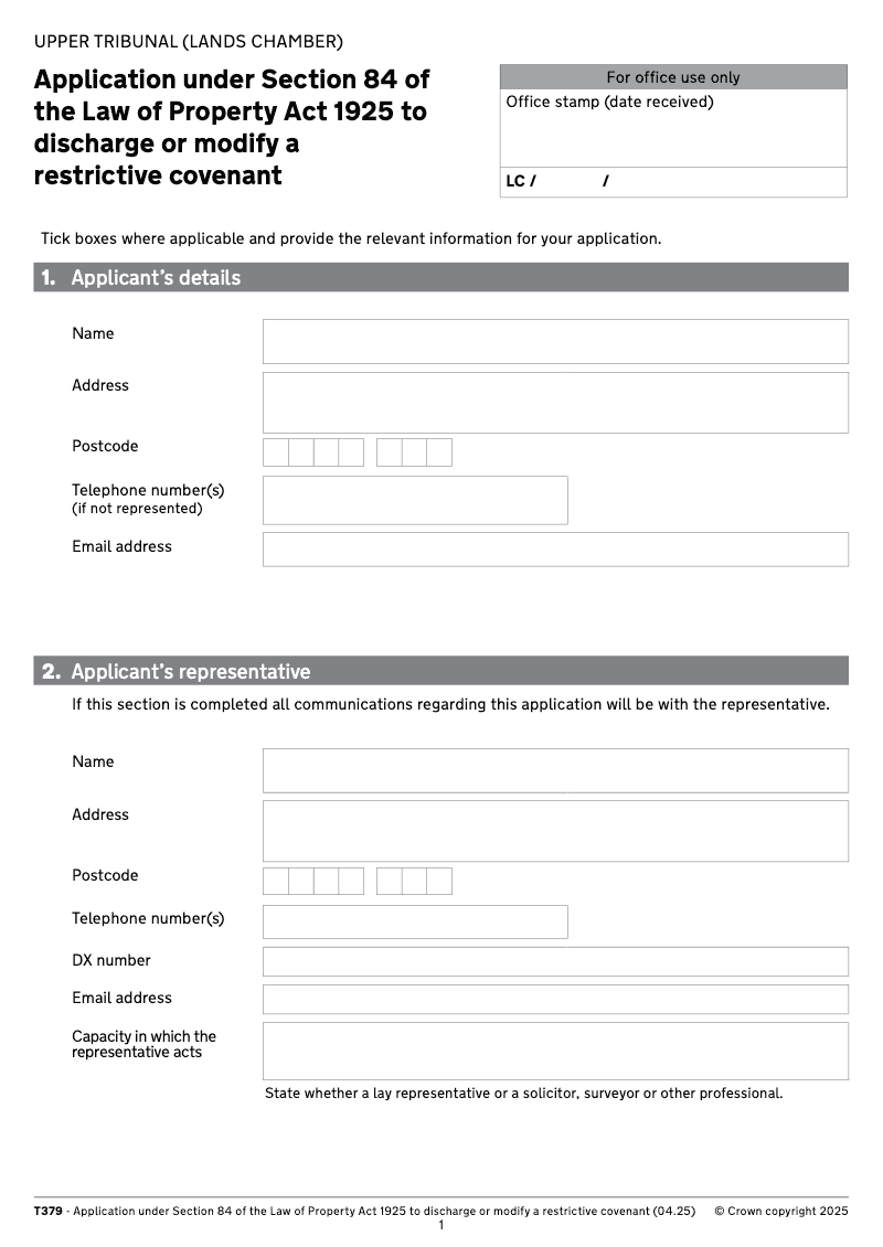 Application under Section 84 of the Law of Property Act 1925 to discharge or modify a restrictive covenant