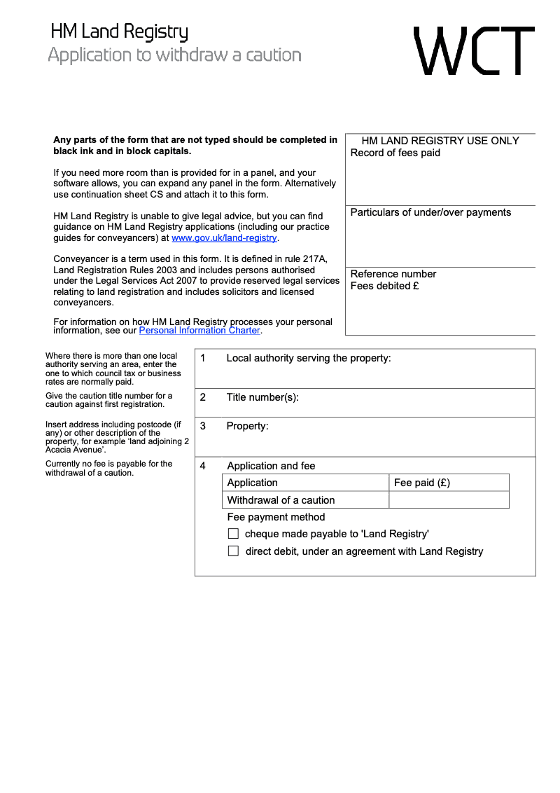 Application to withdraw a caution - Word Version