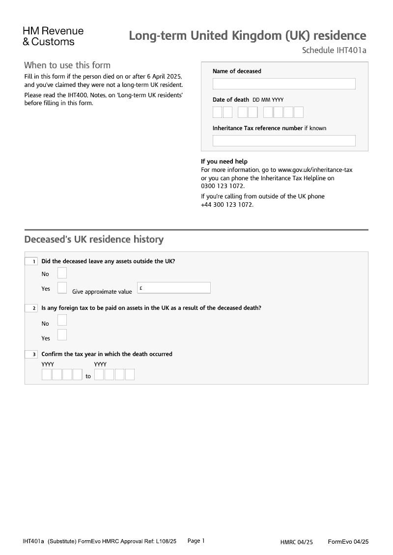 Long-term United Kingdom (UK) residence (Schedule IHT401a)