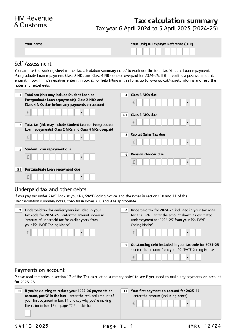 Tax calculation summary - Tax year 6 April 2024 to 5 April 2025 (2024-25)