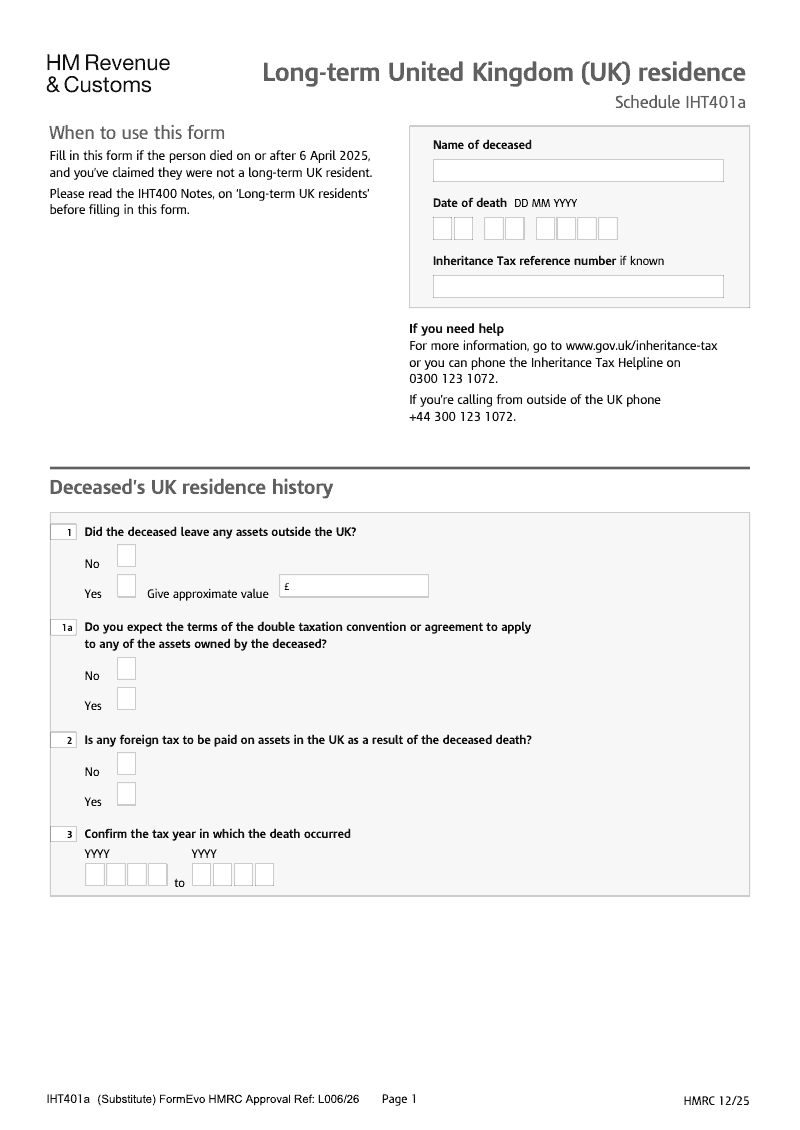 Long-term United Kingdom (UK) residence (Schedule IHT401a)